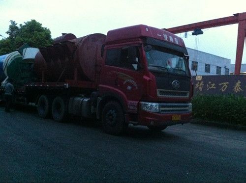 前不久,河南洛陽用戶在萬泰訂購的木屑烘干機經全體員工努力,現已保質保量提前生產完畢準備裝車發貨。雖然外面風大雨大,為了讓用戶早日投入使用,獲取更大的經濟效益,萬泰工作人員決定克服困難,冒雨將產品運送到用戶手中。